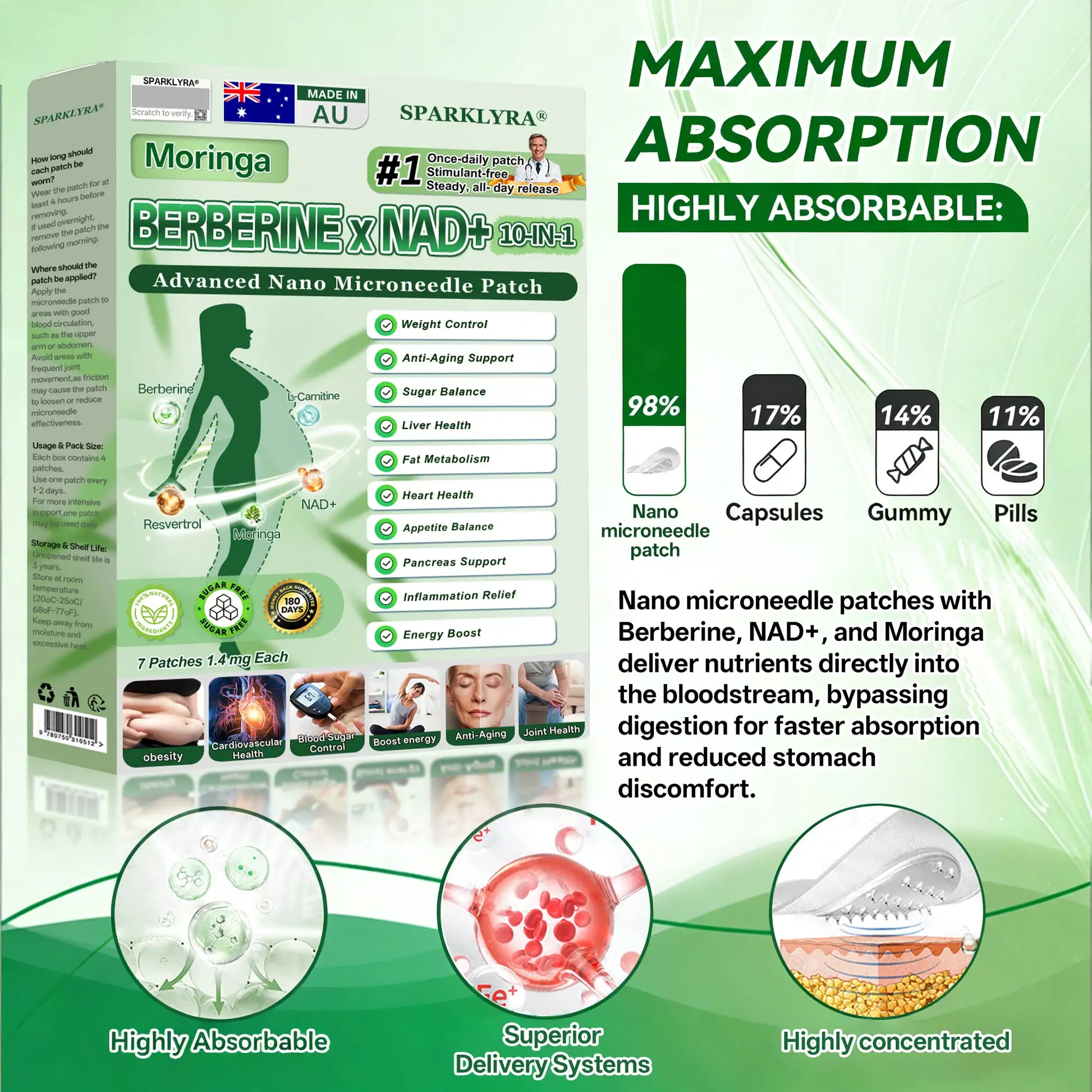 โ Easy Absorption: This formula uses an advanced nano microneedle patch delivery system. Combined with highly active ingredients such as berberine, it delivers key nutrients transdermally into the body, bypassing the digestive system and reducing gastrointestinal burden. The patch provides gentle, steady release for a more comfortable experience, making it especially suitable for individuals with sensitive digestion and those who prefer to avoid injectable weight-loss methods.