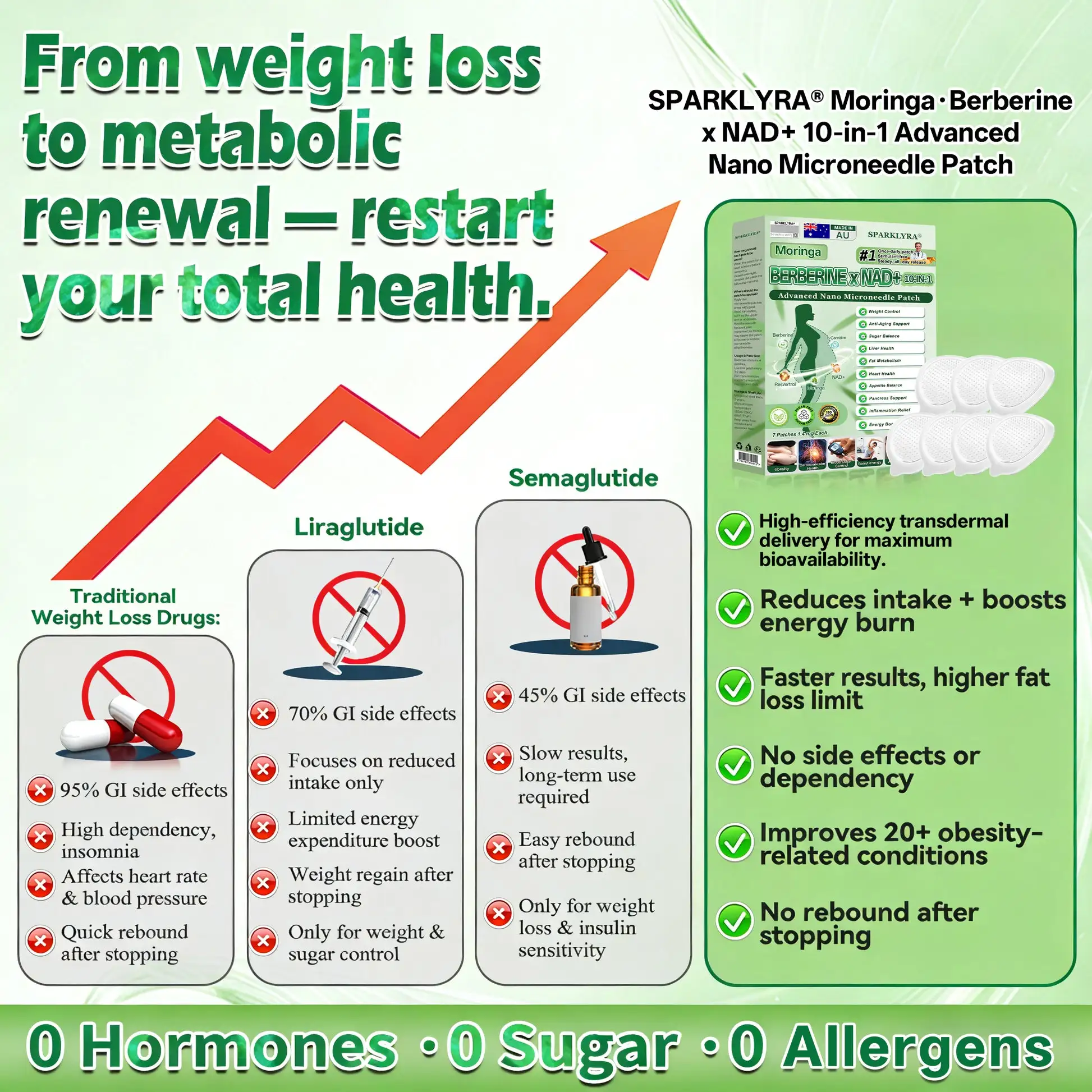 โ ๐๐ฉ๐๐ซ๐ค๐น๐๐ฟ๐ฎยฎ ๐๐จ๐ซ๐ข๐ง๐ ๐ ๐๐๐ซ๐๐๐ซ๐ข๐ง๐ ร ๐๐๐โบ ๐๐-๐ข๐ง-๐ ๐จ๐ ๐๐๐๐๐๐ ๐๐๐ง๐จ ๐ด๐๐๐๐๐๐๐๐ ๐๐ ๐๐๐ญ๐๐ก breaking away from the burden of traditional injectable or oral weight-loss products, this advanced nano microneedle transdermal delivery system gently and steadily releases active ingredients for up to 8 hours. Core ingredients Moringa and Berberine work synergistically to support appetite management and lipid metabolism, making fat loss feel more natural and effortlessโwithout extreme dieting or physical strain. At the same time, NADโบ supports cellular energy levels and skin firmness, helping maintain a healthy, well-toned appearance during body-weight changes. The overall formula is gentle and stable, offering a more comfortable experience for those seeking an effective, non-irritating, and non-injectable approach to weight management.