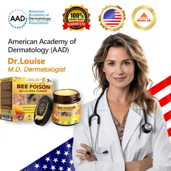 “As a dermatologist, I’ve always been passionate about finding effective, natural solutions for skin problems. After extensive research and testing with my lab team, and clinical trials involving over 2,000 participants, I discovered that BEE POSON is a powerful natural ingredient for addressing a wide range of skin concerns. This led me to create the LOVILDS™ BEE POSON All-in-One Cream—an all-in-one solution designed to naturally and effectively relieve multiple skin issues with precision.” – Dr. Kylea Allora, MD. Dermatologist