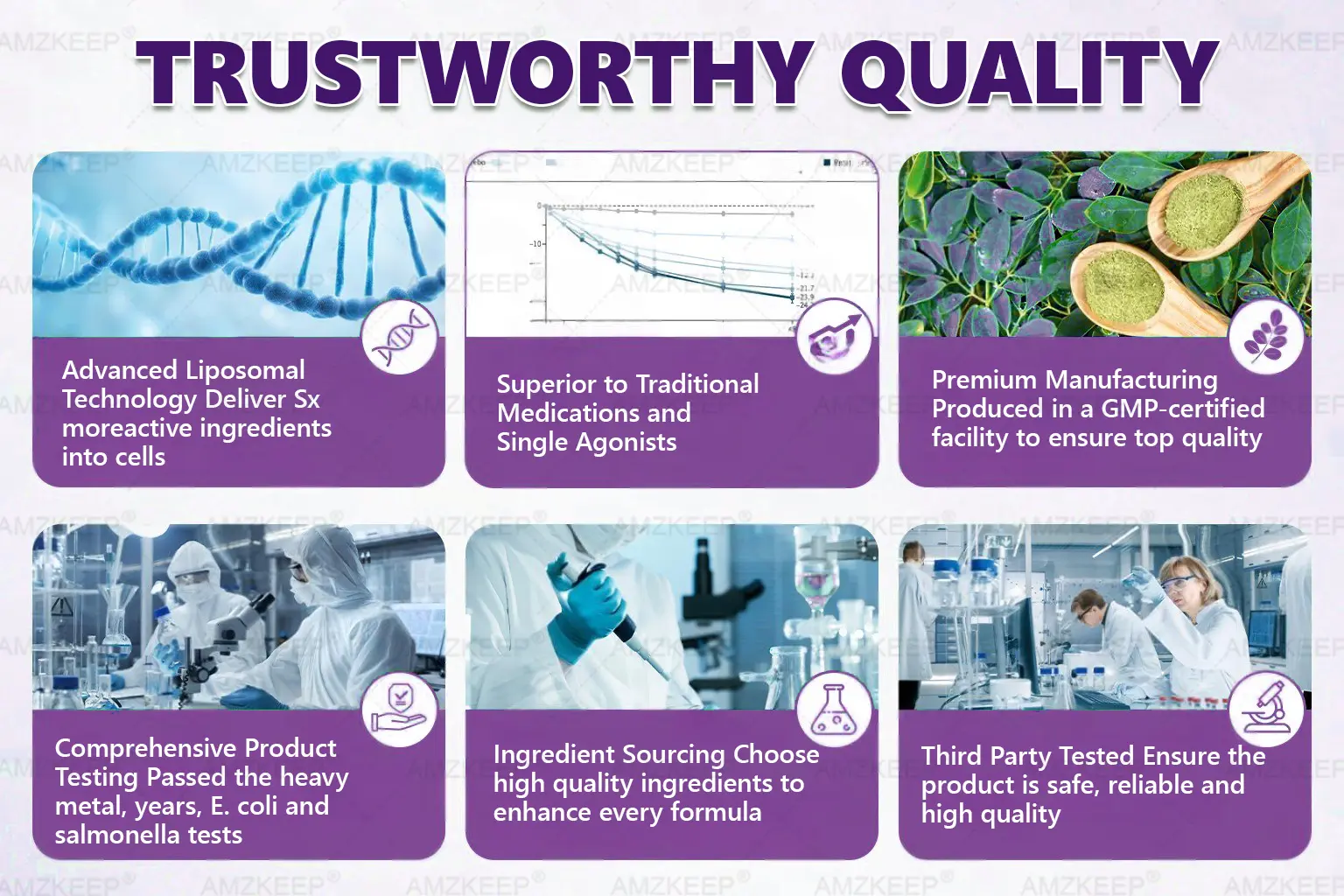 With aging, stress, and a fast-paced lifestyle, many people experienceย mood swings, anxiety, insomnia, memory decline, and brain fogย fromย blood sugar fluctuations, inflammation, low energy, and nervous system overload. For women,ย menopauseย can further intensifyย hot flashes, mood instability, and poor sleep.ย To address this, key ingredients work together:ย Ashwagandhaย lowers stress hormones and improves sleep;ย Magnesiumย calms the nervous system;ย Omega-3 and Ginkgo Bilobaย protect neurons and boost focus;ย NAD+/NMNย restore brain energy.ย Clinical data show that inย 2โ4 weeks, over 85%ย improved mood and sleep; inย 4โ6 weeks, about 80%ย saw better memory and less brain fog; andย over 79% of womenย reported menopause symptom relief. Overall, this combinationย stabilizes mood, restores brainpower, and keeps the mind clear and focused.