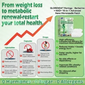 ย Easy Absorption:ย This formula uses an advanced nano microneedle patch delivery system. Combined with highly active ingredients such as berberine, it delivers key nutrients transdermally into the body, bypassing the digestive system and reducing gastrointestinal burden. The patch provides gentle, steady release for a more comfortable experience, making it especially suitable for individuals with sensitive digestion and those who prefer to avoid injectable weight-loss methods.