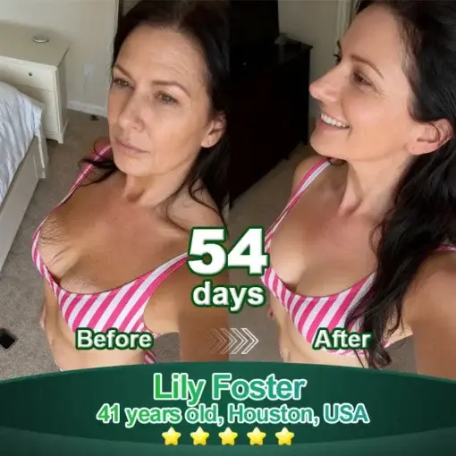I drink it twice a day — just mix it into water — and every time, I feel this gentle warmth all over my body. I’m not kidding, I notice changes almost every other day! I started on August 25th, kept doing it twice a day, plus a bit of sunscreen — that’s literally all. It’s so simple and works so fast! My dark spots, rosacea, wrinkles… even my hair looks so much better now. This is honestly a full-body booster, and I don’t think I can go a day without it anymore. I feel absolutely amazing, and I 100% recommend it!    –Mia Hughes, Chicago
