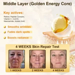 Benefits: ๐ฉ๐๐ ๐๐๐๐๐ stimulates microcirculation and collagen production, acting as a natural booster toย reduce wrinkles by up to 95% in just 6 weeks.ย Meanwhile,ย Retinolย enhances collagen synthesis and smooths texture, visibly reducing fine lines byย 87% in 5 weeks.ย Theย Peptide Complexย (Argireline, Matrixyl 3000, Copper Peptides) works as the โFirmness Architect,โ reducing wrinkle depth byย 92%ย and improving skin elasticity. Finally,ย Vitamin C and CoQ10ย protect against environmental damage, restoring your skinโs glow and improving brightness byย 90% in just 4 weeks.