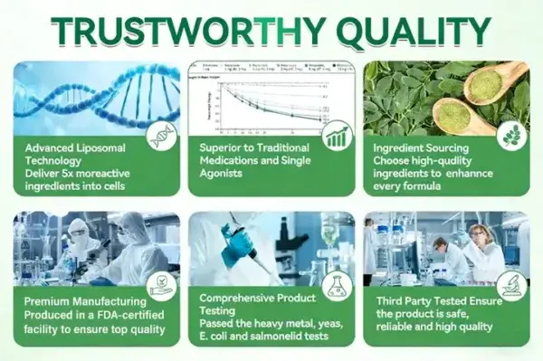 - Salidroside (Adaptogenic Stress Control): A natural adaptogen that regulates stress hormones, eliminates fatigue, and enhances daily endurance.