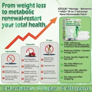 GFOUKยฎ๐ด๐๐๐๐๐๐ฎ ยท ๐๐ฒ๐ฟ๐ฏ๐ฒ๐ฟ๐๐ฃ๐ ร ๐๐ผ๐+ ๐๐-๐ข๐ง-๐ ๐๐ฑ๐๐ฎ๐ป๐ฐ๐๐ ๐๐๐ฃ๐ค ๐๐๐๐ง๐ค๐ฃ๐๐๐๐ฅ๐ ๐๐๐ญ๐๐ ย was developed through more thanย 20 years of research by a multidisciplinary team of over 30 experts. Each patch incorporates an ultra-fine microneedle architecture measuring approximatelyย one-seventh the thickness of a human hair, designed to ensure a smooth and virtually painless application. The formulation containsย highly concentrated natural bioactive compounds, up to 20-fold higher than conventional market levels, includingย Moringa and Berberine, which act synergistically to support healthy glycemic responses, appetite regulation, and lipid metabolism, thereby promotingย gradual and sustainable weight management. Enriched withย NAD+, the patch further supportsย skin firmness and structural resilience during body-weight fluctuations, helping maintain a lean appearance without compromising comfort or aesthetics. Additional high-efficacy components contribute to the support ofย immune function, digestive health, gut balance, womenโs health, daily energy levels, and fatigue reduction, collectively promoting a more youthful and resilient physiological state from within. Manufactured inย GMP-certified facilities that comply with both U.S. and EU quality standards, thisย needle-free, science-driven solutionย provides aย safe and comprehensive approach to effective weight management and long-term metabolic health, designed to workย in harmony with the body rather than against it.