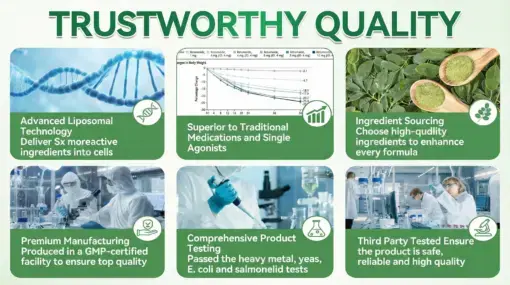 With aging, stress, and a fast-paced lifestyle, many people experienceย mood swings, anxiety, insomnia, memory decline, and brain fogย fromย blood sugar fluctuations, inflammation, low energy, and nervous system overload. For women,ย menopauseย can further intensifyย hot flashes, mood instability, and poor sleep.ย To address this, key ingredients work together:ย Ashwagandhaย lowers stress hormones and improves sleep;ย Magnesiumย calms the nervous system;ย Omega-3 and Ginkgo Bilobaย protect neurons and boost focus;ย NAD+/NMNย restore brain energy.ย Clinical data show that inย 2โ4 weeks, over 85%ย improved mood and sleep; inย 4โ6 weeks, about 80%ย saw better memory and less brain fog; andย over 79% of womenย reported menopause symptom relief. Overall, this combinationย stabilizes mood, restores brainpower, and keeps the mind clear and focused.