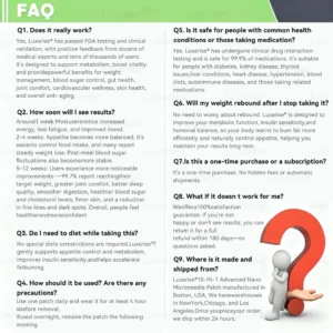 This 100% natural, scientifically formulated patch is designed so that all active ingredients work synergistically without interference. Because it bypasses the digestive system, it can be safely used alongside daily meals and routine products. The patch is vegan-friendly, offers high transdermal absorption, and contains no hormones, sugars, or allergenic ingredients. It is non-GMO, gluten-free, soy-free, and free from artificial colors, fragrances, and preservatives.