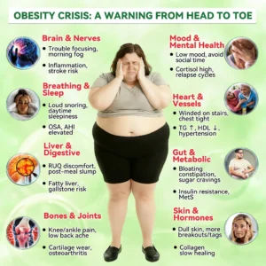 โ Additional Benefits: Can address multiple obesity-related complications, such as cardiovascular disease, type 2 diabetes, arthritis, high obesity/hypertension, fatty liver, liver function recovery, brain fog and memory decline, as well as women’s health issues including hormonal imbalances, menopause-related symptoms, and vaginal problems such as itching and odor.