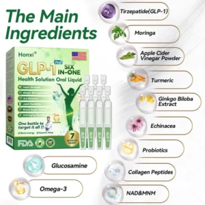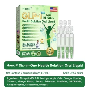 Honxiยฎ GLP-1 Six in One Health Solution Oral Liquid was developed by a team of over 30 experts in international endocrinology and diabetology after more than 3 years of research. It combines Tirzepatideย with powerful herbal ingredients to boost metabolism, accelerate fat burning, and support digestive and lymphatic health. This oral solution has been approved by the U.S. Food and Drug Administration (FDA) for its safety and efficacy, offering a scientifically backed solution for weight loss and overall wellness.