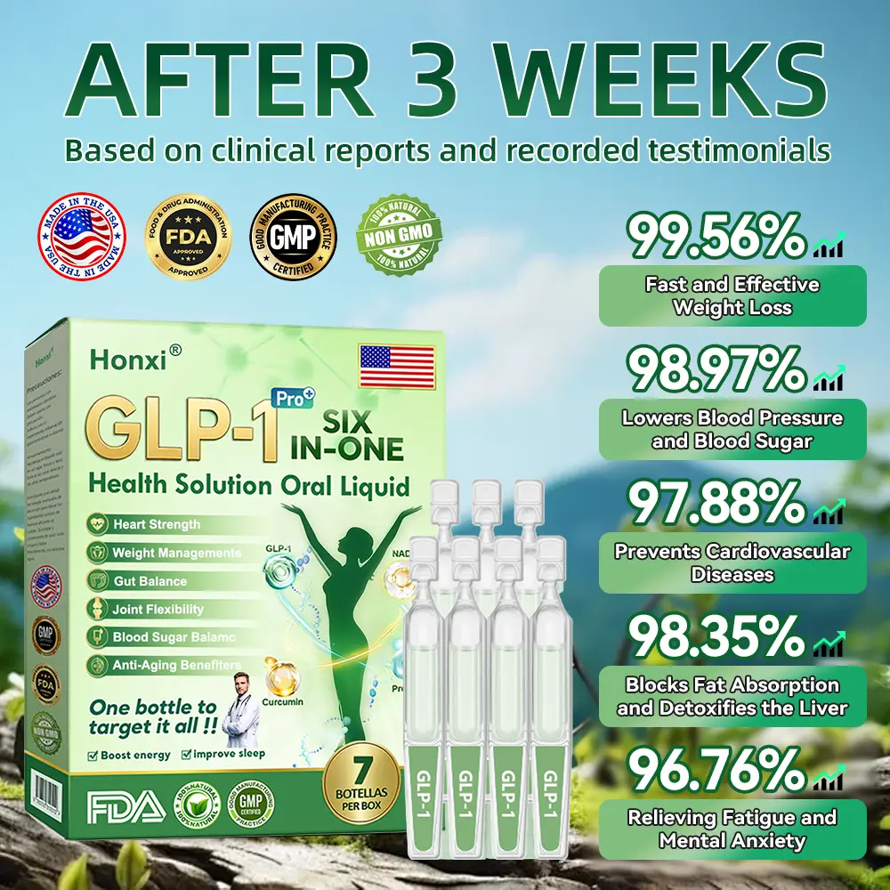 Clinically tested by endocrinologist, Honxiยฎ GLP-1 Six in One Health Solution Oral Liquidย activation can significantly improve obesity and other health issues within just 7 days.