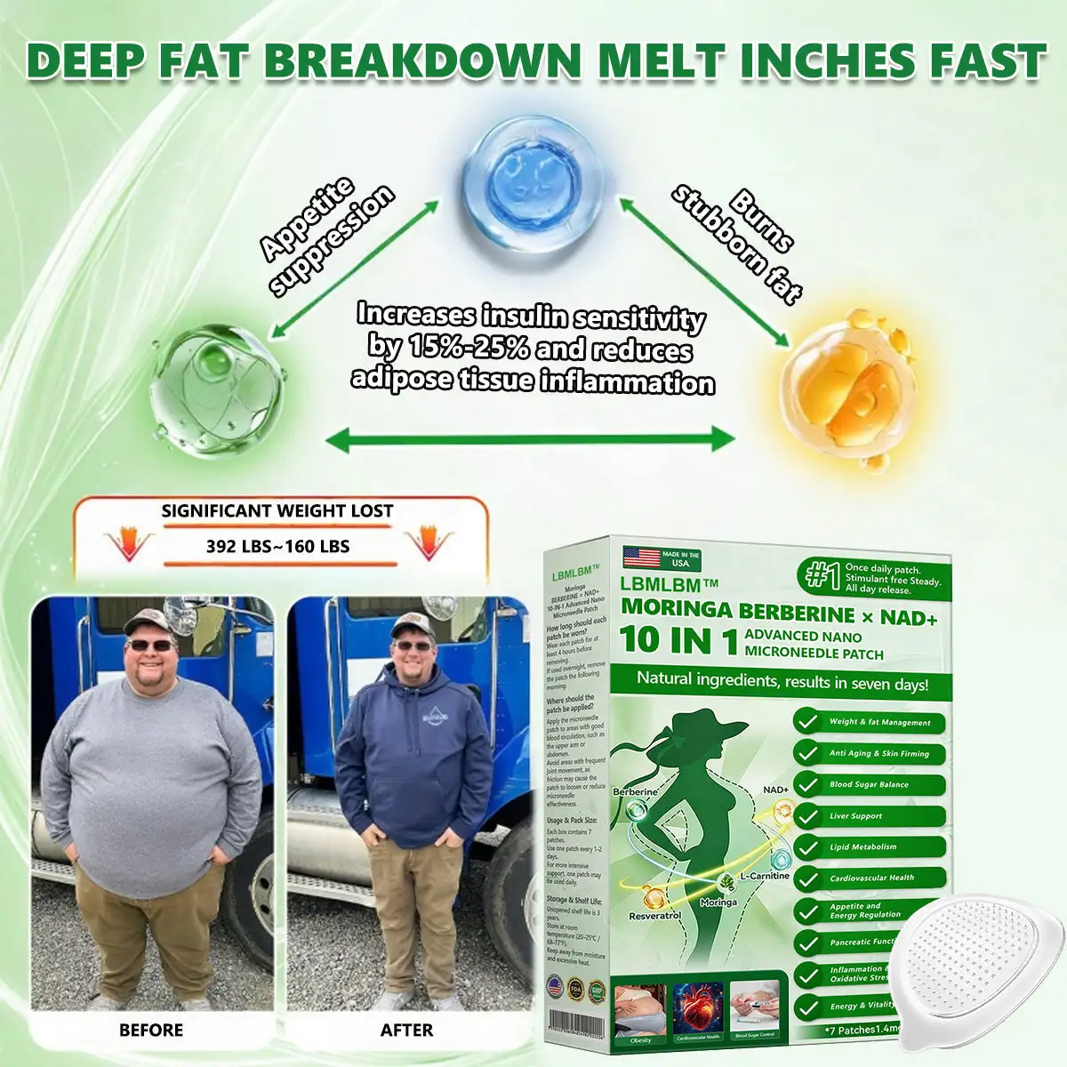 I used the patch daily, and by the third week I had enough energy to easily complete a full 12-hour route. No more afternoon energy crashes. No more relying on multiple energy drinks just to get through the day. In over 14 weeks, I lost 47.6 kg – and for the first time in years, I finally feel like myself again: stronger, clearer-headed, and full of joie de vivre, as if I were back in my 40s.