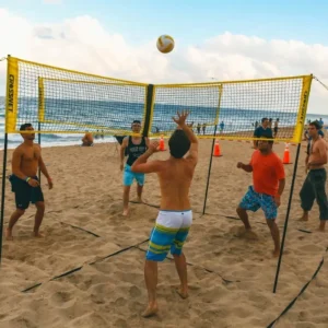 This is the world’s first four-square volleyball game. Set up within minutes in sand, grass, or indoors and challenge your friends to a competitive game to 11, win by 2.