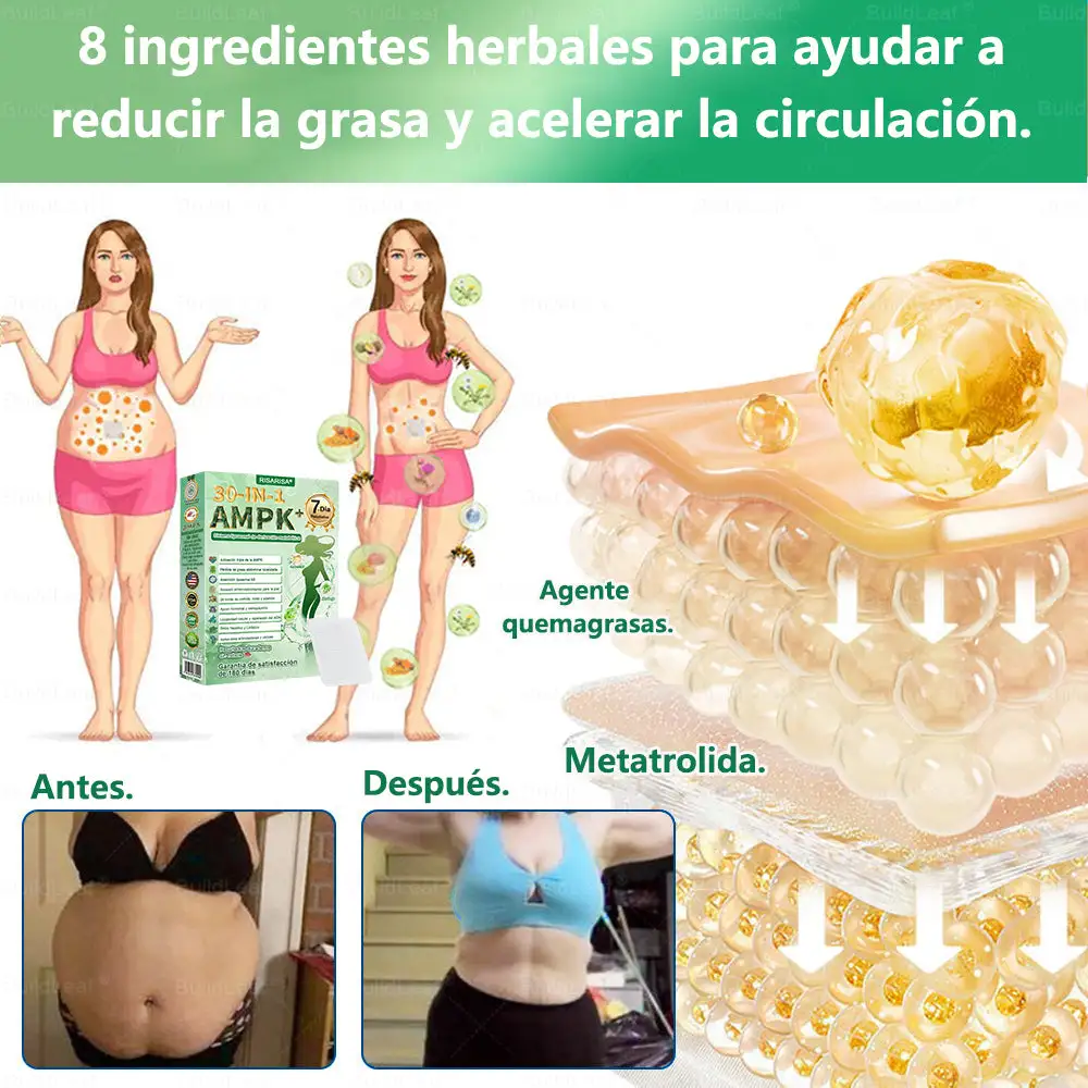 ยทย โ Quema de Grasa Abdominal y Control de Glucosa:ย Optimizado con รcido Alfa Lipoico y extracto de Melรณn Amargo, el parche ayuda a equilibrar el azรบcar en sangre y a movilizar la grasa visceral rebelde. Transforma las reservas de grasa en energรญa real, evitando que los carbohidratos se almacenen en su cintura.