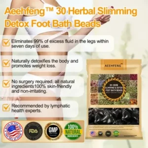 Aeehfeng™ 30-Herb Slimming & Detox Foot Bath Beads combine the potent benefits of various therapeutic herbal extracts to offer an unparalleled detoxification experience. Our exclusive formula, crafted specifically for the feet and legs, facilitates transdermal absorption during your soak, allowing the natural ingredients to penetrate directly into the lymphatic system. This method ensures gentle yet effective delivery of these herbs into the bloodstream and lymphatic pathways, helping to eliminate toxins and impurities while minimizing the buildup of lymphatic fluids that often hinder metabolic processes.