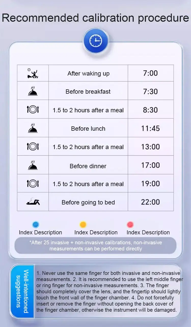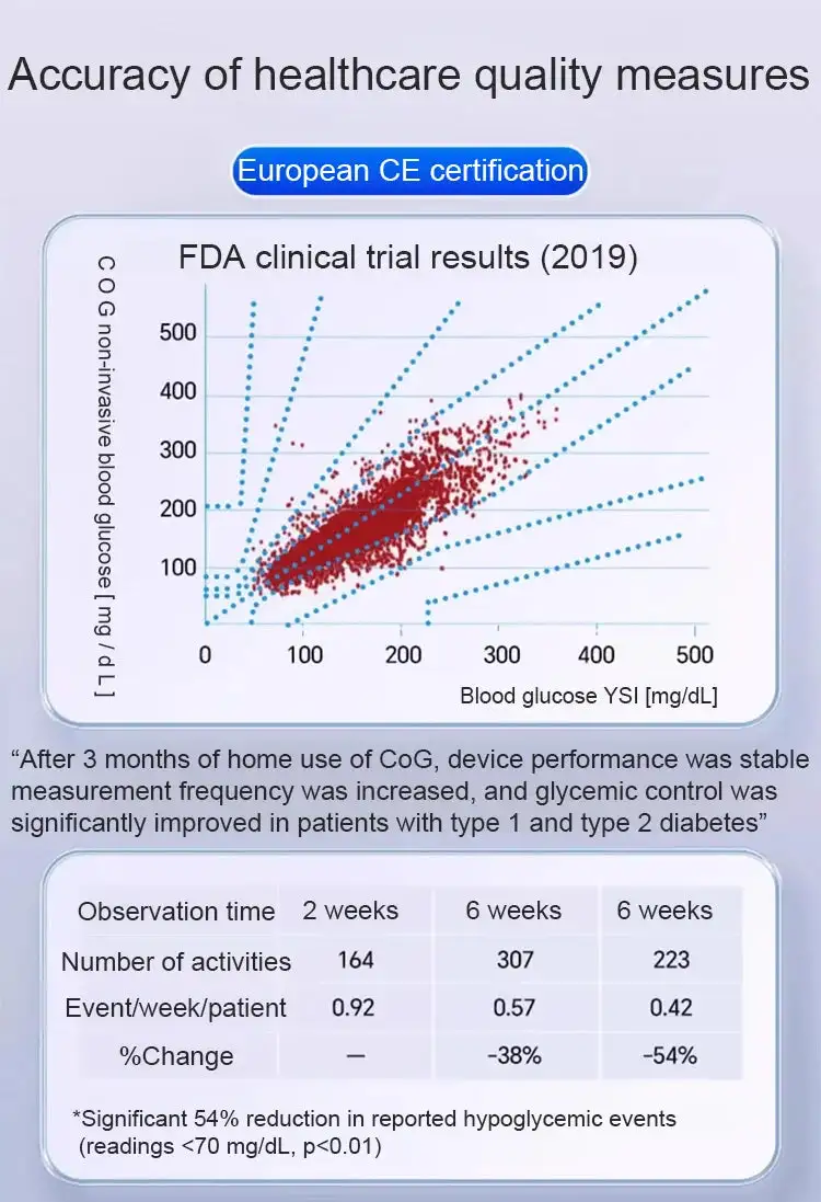 Our non-invasive glucose meters are FDA, IOS, MHRA and EU MDD approved and measure with high accuracy, consistent with measurements from professional medical devices. Please place your order with confidence.