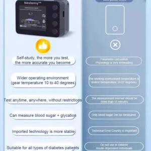 Wave goodbye to the hassle of finger pricks every time you need to check your blood sugar! With Neslemy™ Advanced Non-Invasive GlucoseMonitor, you can track your blood glucose levels in a healthy, convenient, and pain-free way. Ultra-safe and three times more accurate than traditional test strips, managing your blood sugar has never been easier with Neslemy™!