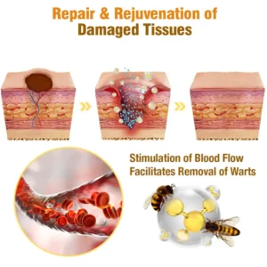 Another significant benefit of bee venom is its ability to enhance blood flow. It stimulates circulation in the treated area, assisting in the removal of skin tags or warts by promoting tissue regeneration and speeding up the healing process, thereby aiding in the repair and rejuvenation of damaged tissues.