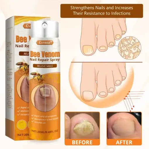 Experience cooling comfort from the very first spray. Cvreoz® Bee Venom Nail Repair Spray instantly soothes itching and irritation, while bee venom’s natural anti-inflammatory effects reduce redness and swelling around the nail area.