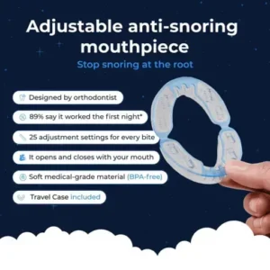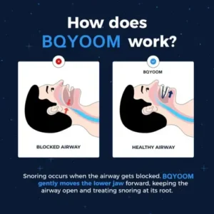 The BQYOOM keeps your lower jaw in proper alignment so it doesn’t fall back while you sleep, opening your airway fully and preventing you from snoring.