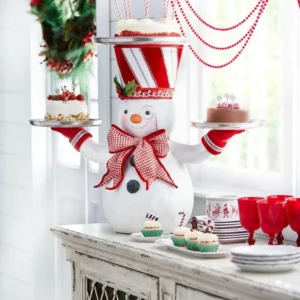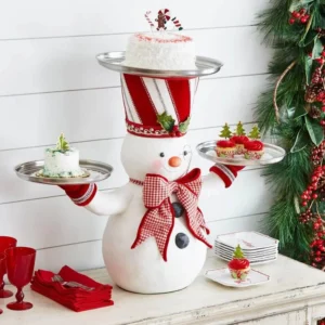 - 🎄🎅【CUTE CHRISTMAS PARTY DECOR】:This Snowman Treats Holder props three plates for serving up all kinds of goodies. As functional to use as it is fun to look at, three trays – hold beverages or devilishly tasty finger foods. This is a Christmas joyful choice to decorate the cupcake dessert for your Christmas dinner, party and Event! Perfect place for all those candy canes you randomly accumulate during the holidays.
