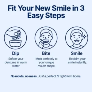 Instant Perfect Smile: Transform your smile instantly with the NESLEMY™Â?/strong>Custom-Fit Functional Dentures. Experience the satisfaction of achieving a flawless. customized fit right away. Our innovative denture set eliminates the discomfort of poorly fitting dentures, offering you a snug and natural feel that makes your dentures feel like a true part of your mouth. Say goodbye to sore spots and irritation as NESLEMY provides immediate relief. allowing you to enjoy your smile with newfound confidence and comfort. Enjoy a seamless transition to a better-fitting, more comfortable denture experience without delay.