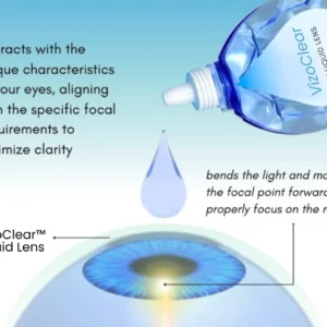 The VizoClear™ Daily Liquid Lens operates on a cutting-edge principle where the liquid swiftly adjusts to the natural focal point of your eyes. This dynamic adaptation is the key to correcting refractive errors, such as nearsightedness or farsightedness, seamlessly. When you apply 1-2 drops of the liquid, it intelligently interacts with the unique characteristics of your eyes, aligning with the specific focal requirements to optimize clarity.