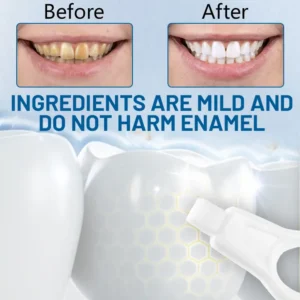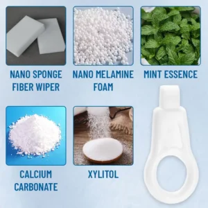 Ceoerty™ Highly Effective Tooth Stain Cleaner rejuvenates your teeth’s natural brightness through the application of cutting-edge nanotechnology. The product’s active ingredients penetrate the smallest crevices of your teeth, precisely targeting and removing stubborn stains. The Nano Sponge Fiber Wiper gently sweeps away surface discoloration and deposits, while Nano Melamine Foam uses its superb adsorption and gentle abrasive properties to deeply cleanse and dissolve stains. These cleaning agents effectively break down stains from coffee, tea, red wine, and tobacco, restoring your teeth’s natural whiteness. To finish, the Mint Essence provides a refreshing sensation, boosting breath freshness.
