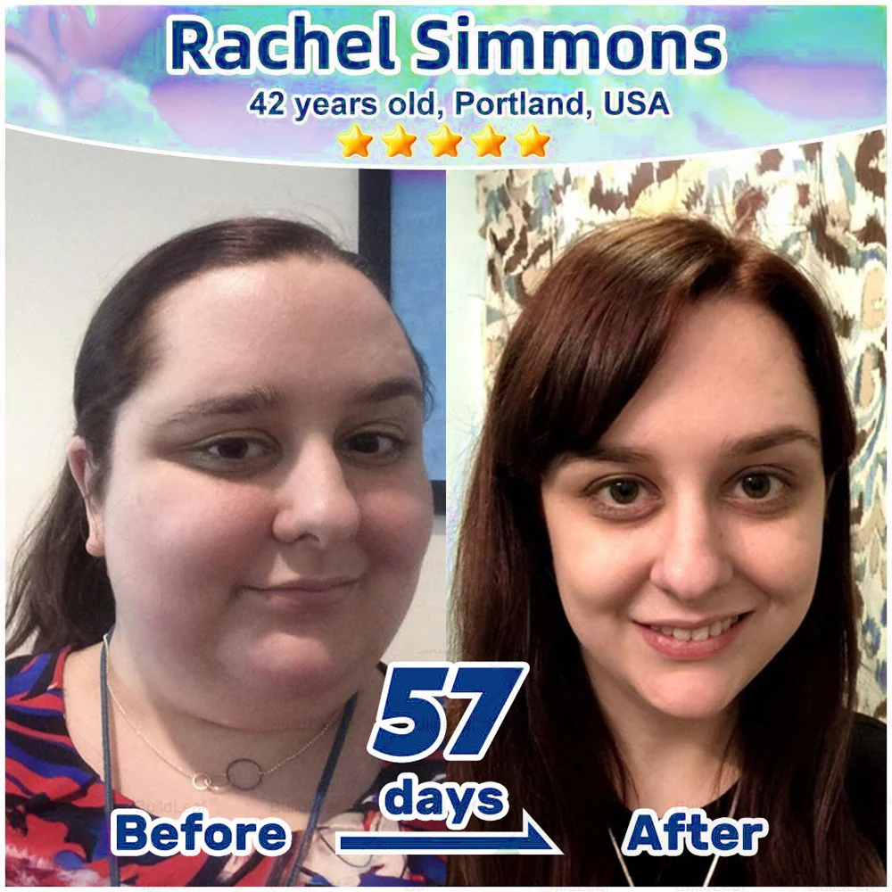 After 57 days, not only had I lost weight, but the lymphatic swelling around my neck was gone, my feminine discomfort had completely cleared, and I looked healthier and more refreshed. Honxi® didn’t just help me slim down—it tackled the hidden causes behind my struggles and gave me back my comfort, energy, and confidence.”-Rachel Simmons,42 years old, Portland, USA