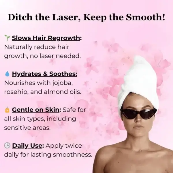 Experience the benefits of Cyperus Rotundus Oil, the key ingredient in this formula that slows hair regrowth naturally. Along with jojoba oil, rosehip oil, sweet almond oil, aloe extract, acetyl tripeptide, and tea tree oil, this gentle and effective solution provides a nourishing alternative to traditional hair removal methods, leaving your skin feeling smooth and rejuvenated.