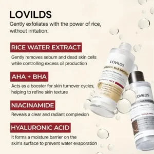 Rice Water Extract : A gentle ingredient that exfoliates and balances sebum production,.