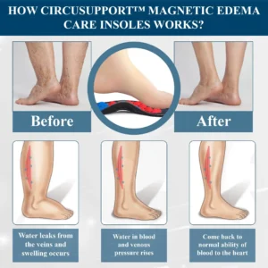 CircuSupport™ Magnetic EdemaCare Insoles combine advanced magnetic therapy and pressure point stimulation for a holistic approach to improving circulation. The targeted magnets generate an electromagnetic field that enhances blood flow, reducing fluid buildup and promoting faster healing in the lower limbs.
