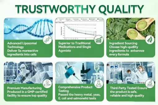 With aging, stress, and a fast-paced lifestyle, many people experience mood swings, anxiety, insomnia, memory decline, and brain fog from blood sugar fluctuations, inflammation, low energy, and nervous system overload. For women, menopause can further intensify hot flashes, mood instability, and poor sleep. To address this, key ingredients work together: Ashwagandha lowers stress hormones and improves sleep; Magnesium calms the nervous system; Omega-3 and Ginkgo Biloba protect neurons and boost focus; NAD+/NMN restore brain energy. Clinical data show that in 2–4 weeks, over 85% improved mood and sleep; in 4–6 weeks, about 80% saw better memory and less brain fog; and over 79% of women reported menopause symptom relief. Overall, this combination stabilizes mood, restores brainpower, and keeps the mind clear and focused.