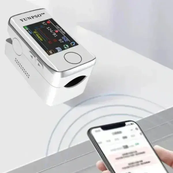 Completely painless, just place your index finger on the YUNPSO™ and within minutes it will show you your blood oxygen levels, glucose and even heart rate,all quickly and easily .