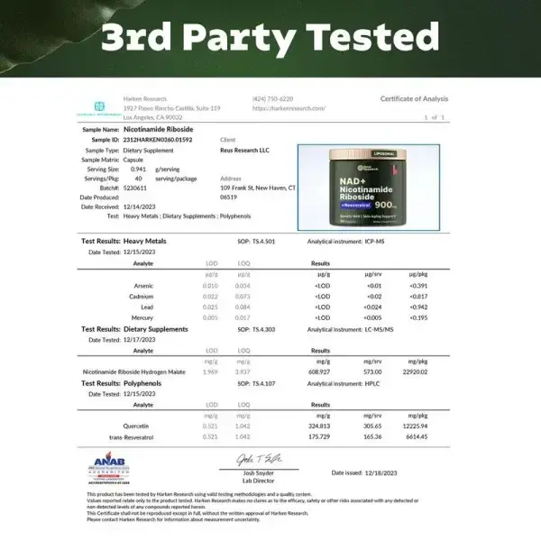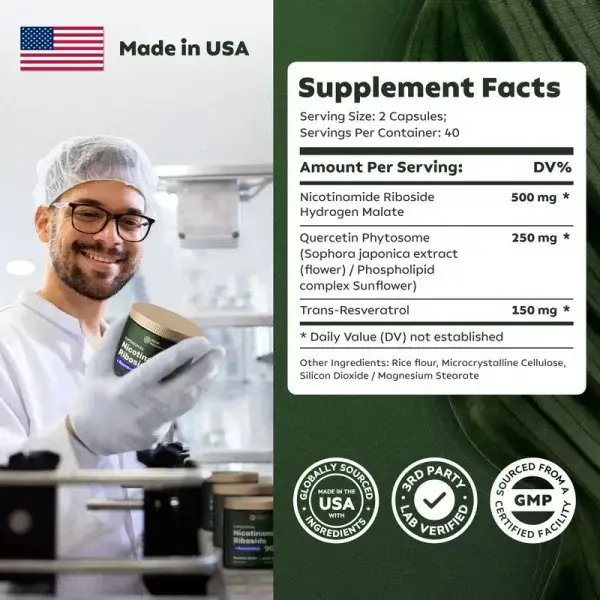 Boost NAD+ by 63% with Liposomal Nicotinamide Riboside & Resveratrol capsules for youthful skin, enhanced energy, and improved focus.