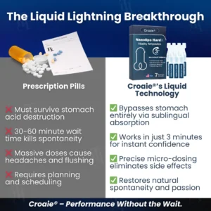 Because there’s a revolutionary liquid technology that bypasses your stomach entirely, works in just 3 minutes, and is giving men back their confidence without the horror stories of prescription drugs.