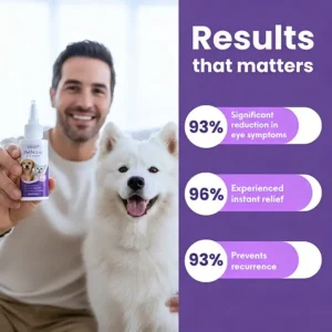 Many pet parents notice improvement in redness, cloudiness, and comfort within 1–3 weeks of consistent use.