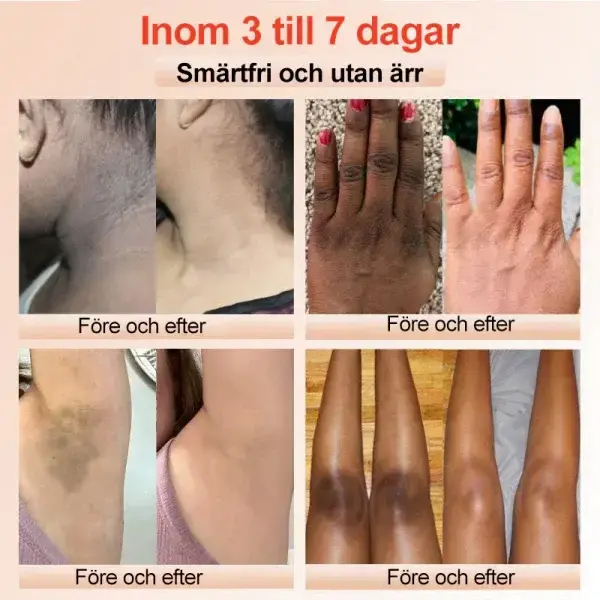 Inom några dagar började hyperpigmenteringen bli ljusare och min hudton jämnade ut sig. Efter bara två dagar var mina armhålor märkbart bättre och tunnare. Den mjuka och tunna gelen innebar att jag inte behövde oroa mig för irritation eller obehag.