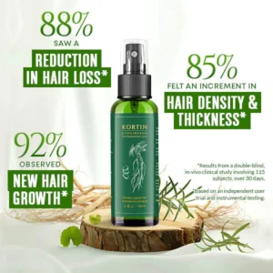 KORTIN RedGinseng Hair Renewal Spray is a breakthrough formula that contains patented, award-winning ingredients, scientifically proven to increase the appearance of hair density while reducing the signs of hair loss, to bring you thicker and fuller hair.