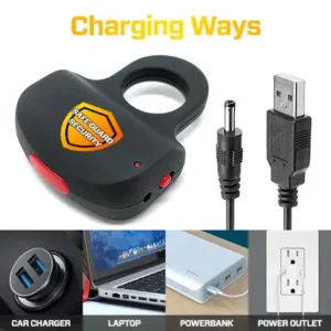 Equipped with a built-in rechargeable battery, the SafeGuard™ Stun Grip ensures you’re always prepared. Easily charge it using the included plug, and enjoy a battery life that lasts 30-45 days with minimal use. This eliminates the need for costly battery replacements, providing long-term reliability and convenience.