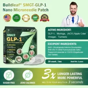 Package Includes: 1 x Buildleaf® SMGT-GLP-1 Nano Microneedle Patch with Collagen Peptides &Matrixyl 3000