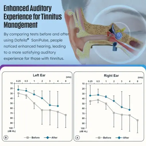 “I was skeptical at first, but Dafeila® SoniPulse exceeded my expectations. The SonicRelax feature, targeting the root cause of tinnitus, sets this apart. It’s not just masking the noise; it’s actively working to provide long-term relief. Highly recommend it!”