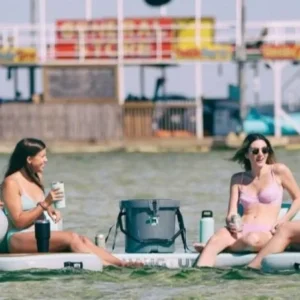 This Giant Curved Inflatable Dock Holds Up To 6 Adults and a Cooler