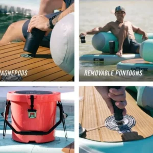The AeroBOTE technology also ensures a rigid, durable inflatable that lets you move around and attach it to an actual dock or slow moving boat without the risk of punctures or capsizing.