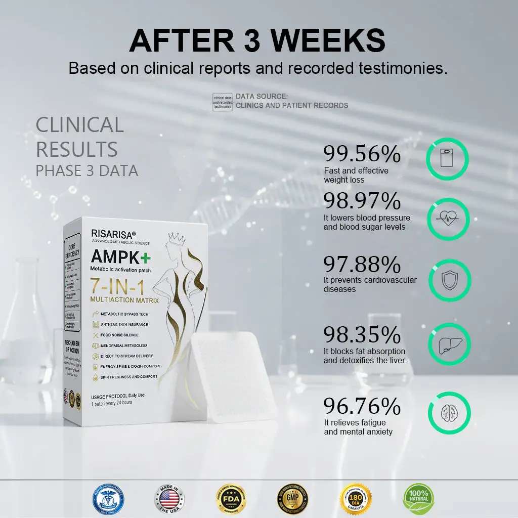 I had tried other pills before, but now I understand why they didn’t work: my stomach destroyed most of the ingredients. With the Risarisa® Patch, everything changed. Thanks to its Direct-to-Stream technology, the active ingredients enter my system directly to activate the AMPK ‘metabolic switch’ 24 hours a day.