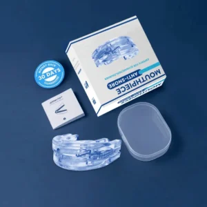 Und selbst wenn Sie bereit sind, Zeit und Geld zu investieren, könnte die Erfahrung nicht ideal sein. Es besteht aus hartem Kunststoff, ist nicht gerade bequem und zwingt Ihren Mund, geschlossen zu bleiben. Stellen Sie sich vor, die ganze Nacht auf einem starren Gerät zu beißen, mit Kieferschmerzen aufzuwachen und sogar Schwierigkeiten beim Essen oder Sprechen zu haben…