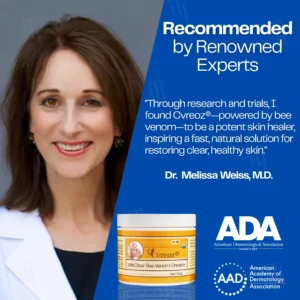 Cvreoz® VitiClear Bee Venom Cream harnesses nature’s healing power to restore your skin’s natural pigmentation. Trusted by millions worldwide, this dermatologist-developed formula targets vitiligo at the cellular level—stimulating melanocyte activity, reducing inflammation, and restoring even skin tone.